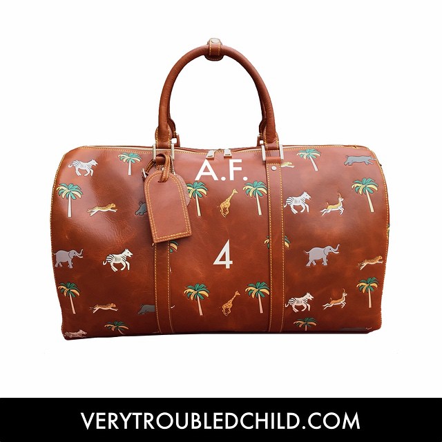 Make it your very own. Only on verytroubledchild.com. 🚞🐘🐅 #WesAnderson #TheDarjeelingLimited #Thedarjeelingbag #monograms #initials #handmade #manbag #leather #leatherbag #keepall #dufflebag #weekender #handbag #travels #travelbag #journey #verytroubledchild