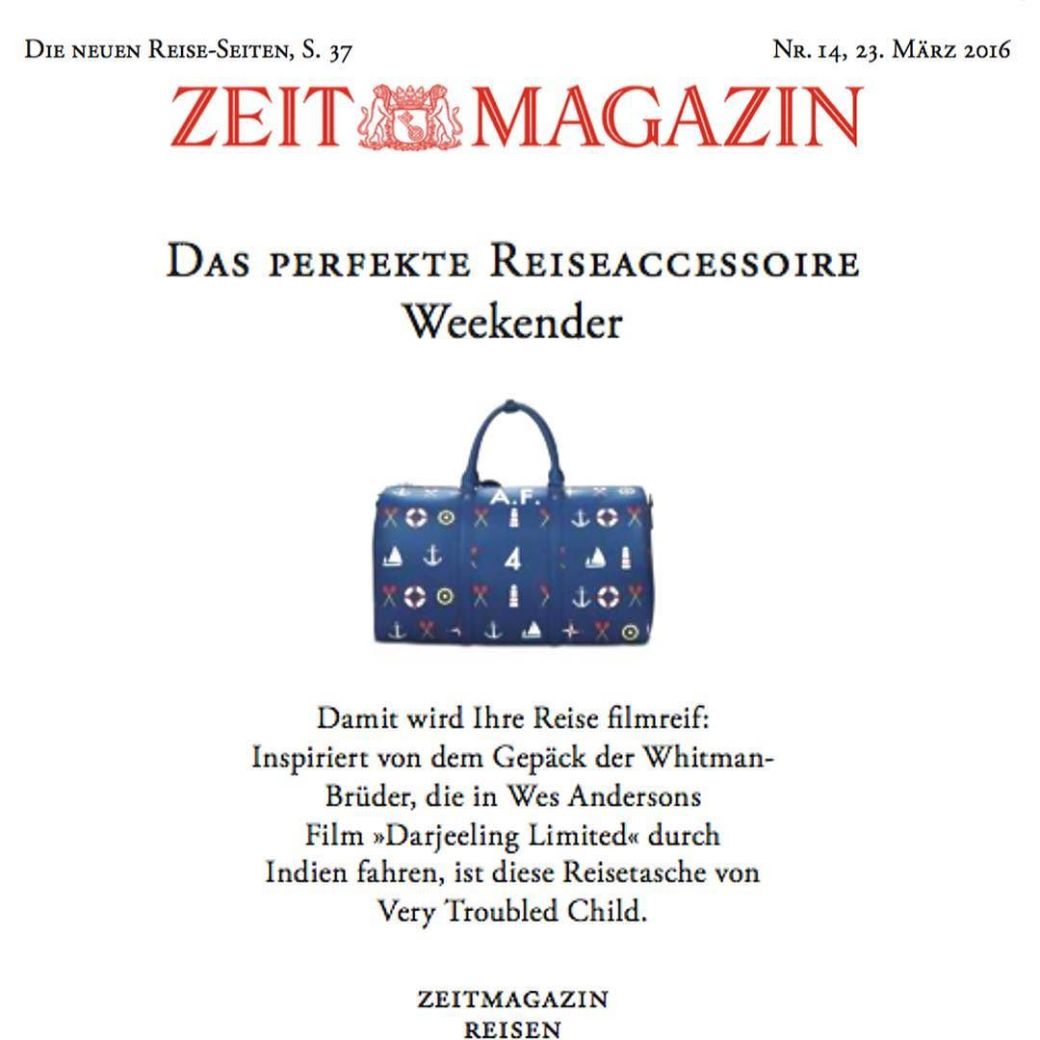 Look who featured us! Our German secret agent reported that it means something like: The Perfect Travel Accessory. And we agree with that! Yay! ππΌβΊοΈπ #verytroubledchild #zeitmagazin #fromgermanywithlove March 23, 2016March 23, 2016 / verytroubledchild from Instagram: http://ift.tt/1WJ4kiZ Share this: Email a link to a friend (Opens in new window) Email TweetLike Loading... Related