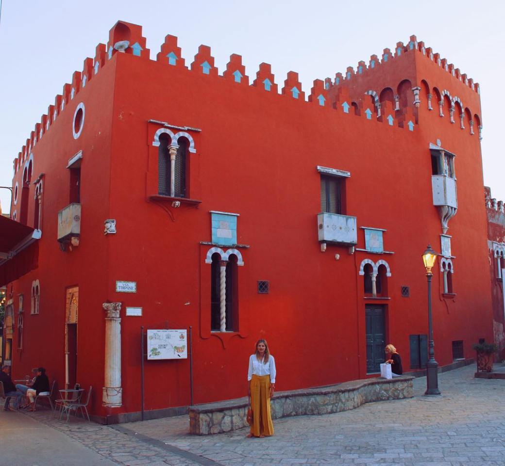 Along Anacapri’s main street lined with whitewashed houses and local shops, sits the bright red facade of a building, architecturally unique among its plain-faced traditional island neighbors for its strange and fantastic decorations. This is Casa Rossa, built by the eccentric American colonel John Clay MacKowen alongside an Aragonese tower dating from the end of the 1400’s, and representing a perfect example of the typical eclectic residence-museum which was very much in fashion at the end of the 19th century. 🇮🇹 #anacapri #verytroubledchild #savannabag #capri #italia